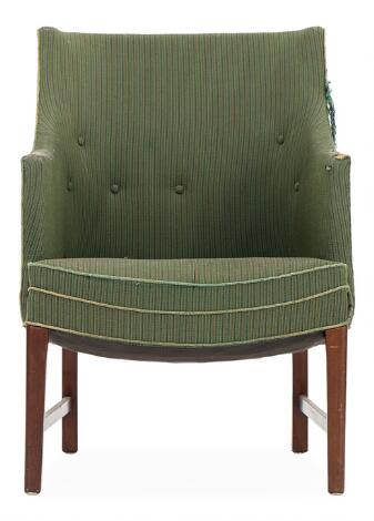 Frits Henningsen: Lænestol med stel af mahogni. Betrukket med grøn uld.