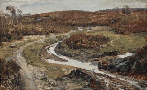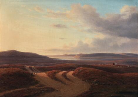 2546/49Janus la Cour: View from a heath road. Signed and dated J. L. C. 12. Oktb. 1873. Oil on canvas. 20.5 x 33 cm.
