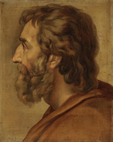 2546/97Painter unknown, 19th century: An apostle seen in profile. Unsigned. Oil on canvas. 72 x 60 cm.