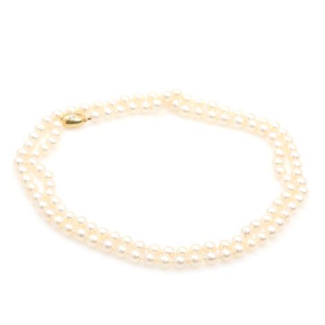 2546/1199AarhusLang perlekæde prydet med talrige perler monteret med diamantlås af 18 kt. guld. L. 93 cm.