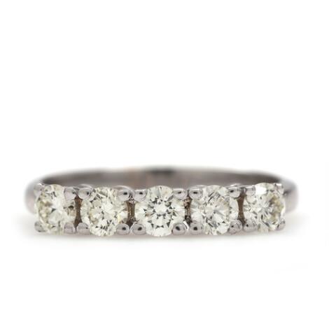2546/1208AarhusDiamantring af 18 kt. hvidguld prydet med fem brillantslebne diamanter på i alt ca. 1,00 ct. Str. 55.