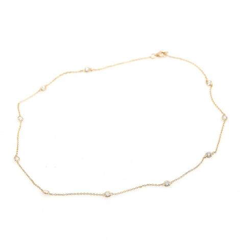 2546/1211AarhusDiamanthalskæde af 14 kt. guld prydet med talrige brillantslebne diamanter på i alt ca. 1,00 ct. L. 42,5 cm.