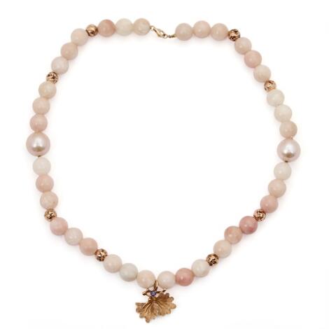 2546/1201LyngbyKoralhalskæde af 18 kt. rosaguld med perler af poleret koral samt ferskvands kulturperler. L. 45 cm.