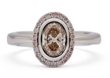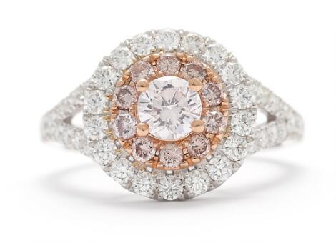 2546/1131A diamond ring set with partly pink diamonds, mounted in 18k white and rose gold. D/VVS. Weight app. 5 g. Size 54.