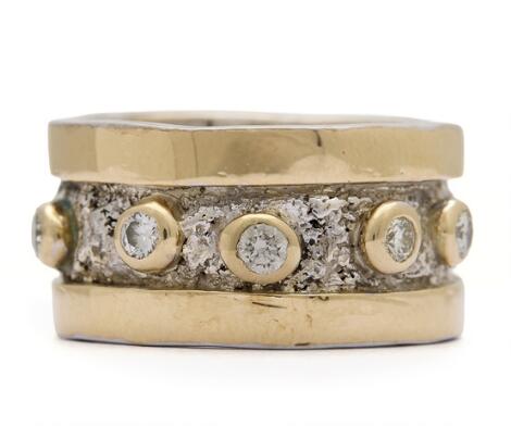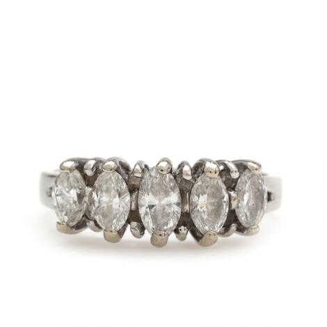 2546/1134A diamond ring set with five brilliant-cut diamonds, mounted in silver and gilded silver. Weight app. 17 g. Size app. 57.
