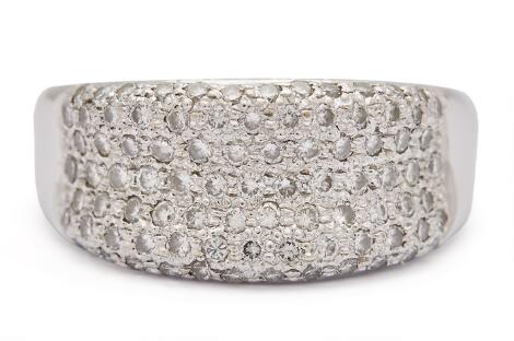 2546/1115A diamond ring set with numerous brilliant-cut diamonds, mounted in 18k white gold. W. 19.8 mm. Size 56.