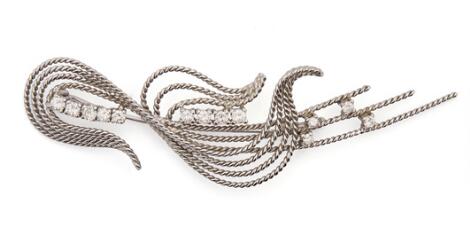 2546/1111A diamond brooch set with numerous diamonds, mounted in 18k white gold. Weight app. 7.5 g. L. 8 cm.