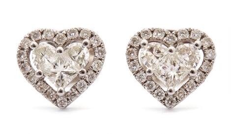 2546/1133A pair of diamond ear studs in the shape of hearts each set with numerous diamonds, mounted in 18k white gold.W. 9 mm. (2)