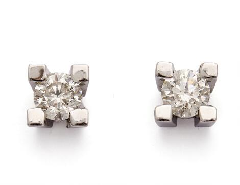 2546/1136A pair of solitaire diamond ear studs each set with a diamond, mounted in 18k white gold. Diam. 5 mm. (2)