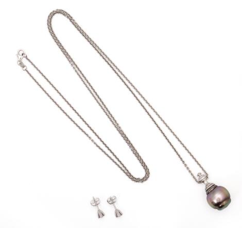2546/1135A jewellery set comprising a pair of ear studs and a pendant, mounted in 14k white gold. L. 79 cm. (4)