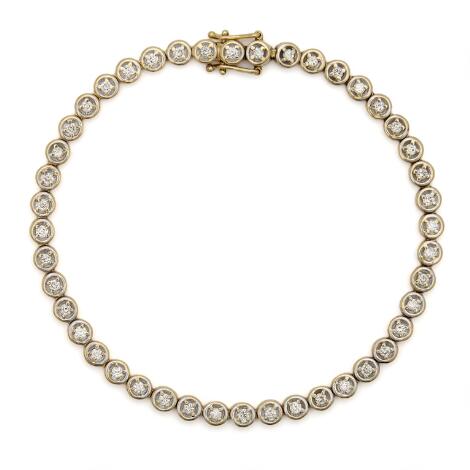 2546/1124A diamond bracelet set with numerous brilliant-cut diamonds, mounted in 14k gold and white gold. L. 18 cm.