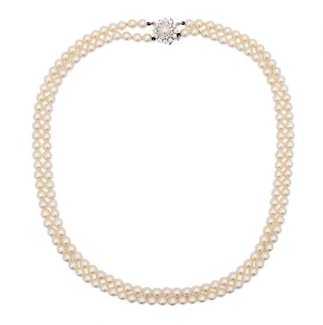 2546/1148A two-strand pearl necklace set with numerous pearls and a clasp of 14k white gold. L. 53.5 cm.