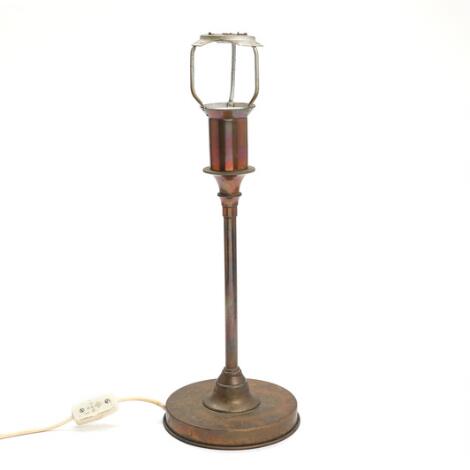 2546/920Dansk design: Bordlampestel af patineret messing. Udført hos Lyfa. 1930-40'erne. H. inkl. skærmholder 49 cm.