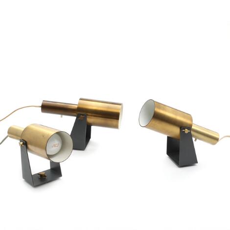 2546/910Hans Per Jeppesen: "Sonet". Tre væglamper af messing og grålakeret metal. Udført hos Fog & Mørup. H. 25. (3)