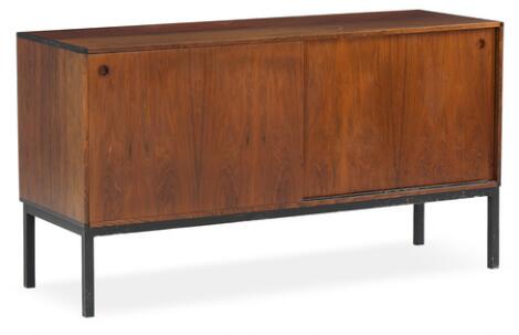 2546/761Hans Hove & Palle Pedersen: A rosewood sideboard with black lacquered metal frame. H. 70. W. 128. D. 44.