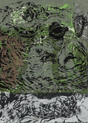 2546/526Michael Kvium: Uden titel. Signeret Kvium 97, 20/50. Litografi i farver. Bladstørrelse 23 x 21 cm.