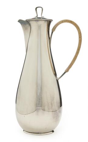 2546/552Sigvard Bernadotte: Mokkakande af sterlingsølv med glat, dråbeformet korpus. Hank omviklet med plastflet. H. 23,5.