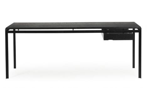2546/566Poul Kjærholm: "Professorbordet". Skrivebord af sortmalet stål og eg med skuffesektion. H. 71,5. B. 186,5. D. 85 cm.