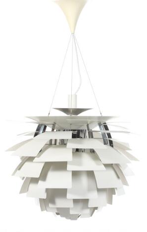 2546/545Poul Henningsen: "Koglen". Pendel med lameller af hvidlakeret metal. Udført hos Louis Poulsen. Diam. 72 cm.