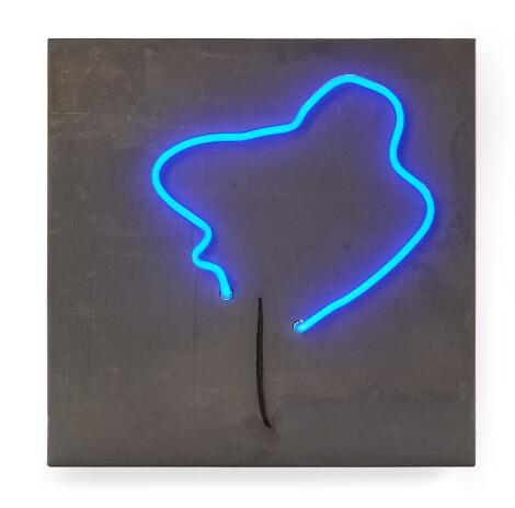 2546/517Gun Gordillo: "Balloni Blue", 2024. Signed, titled and dated on the reverse. Neon relief on lead board. 45 x 45 x 6 cm.