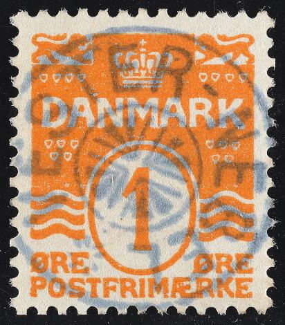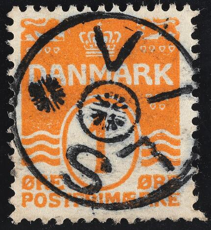 VILS. Very rare starcancellation in PERFECT condition on 1 øre, orange. Cert. Lars Jørgensen.