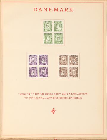LA POSTE DANOISE. 1624-1924. By Jørgen Bergsøe. Complete book with all stamps from 1875-1924, rare essays 1924, reprints 1851-1875 etc. Also