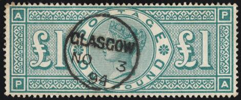 1891. £1. green. Very fine used GLASCOW NO 3 94.