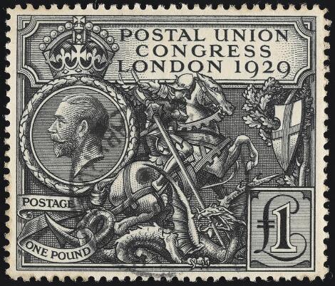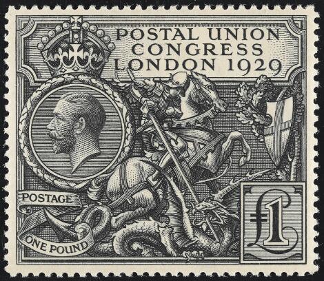 1929. UPU. £1, black. Very fine used copy.