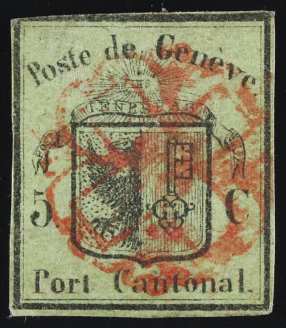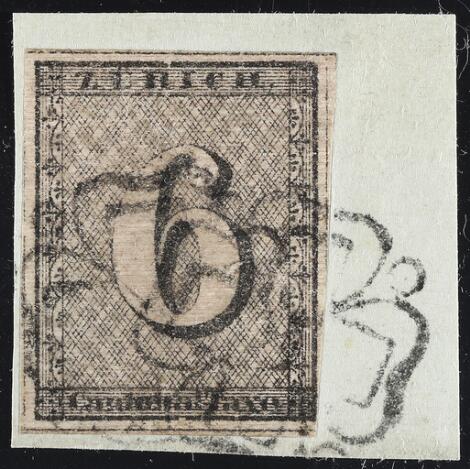 1843. Kanton Zurich, 6 rp. horizontal lines. Very fine used copy on small piece. A little fainted colour. Cert. H. Hunziker A.I.E.P.