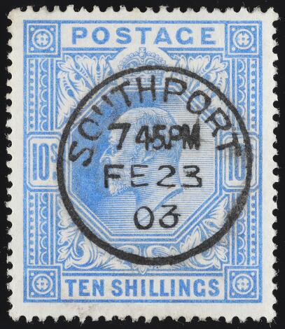 1902. 10 s. PERFECT used copy "SOUTHPORT FE 23 03".