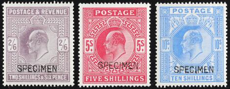 1902. 2/6 s to 10 s. Complete set high values in unused condition with overprint "SPECIMEN".