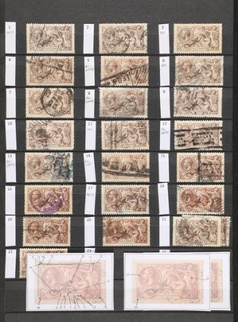 Great Britain. Seahorses. Interesting selection sorted in prints and small varieties etc in a stockbook. Please inspect.