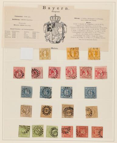 Bayern. Collection in a binder with also a few other states with many different issues and some inquantities incl. better. Mixed condition to be expected. All p