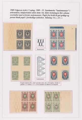 Russia. 1909-1922. Well build exhibition-collection Definitive-issue, 1 kopek-10 Rubles. Nicely written up on 96 pages (6 frames) with specialized sections