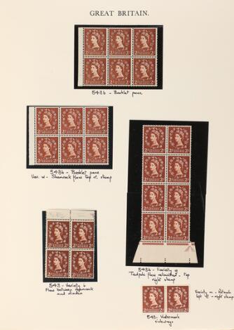 Great Britain. Elisabeth "Wildings". Specialized collection 4 stockbooks with issues sorted in types and varities etc. Must be inspected!