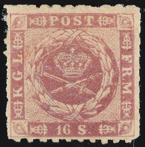 1863. 16 sk. rose lilac. Most beautiful and fresh unused copy with original gum. Cert. Nielsen