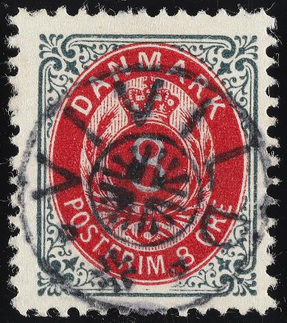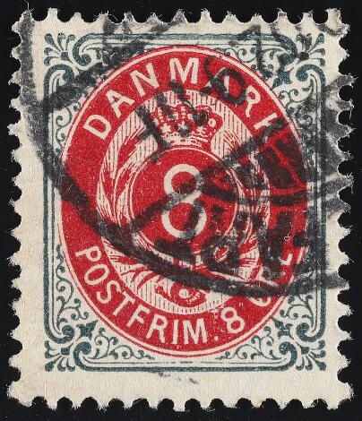1902. 8 øre, 121.print, wmk.III. Excellent copy with upright star-canc. VIVILD