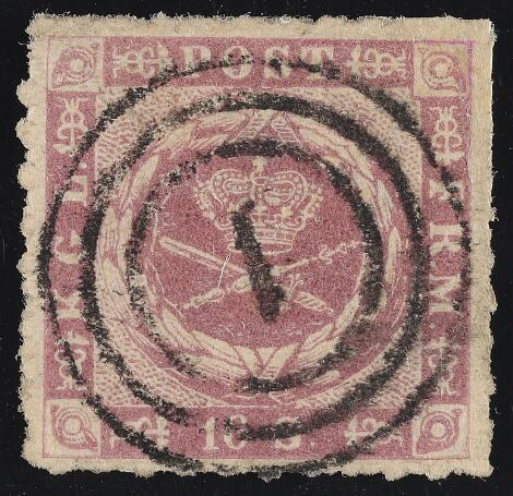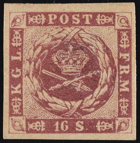 1863. 16 sk. deep redish lilac. Imperforated. very fine copy