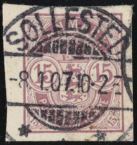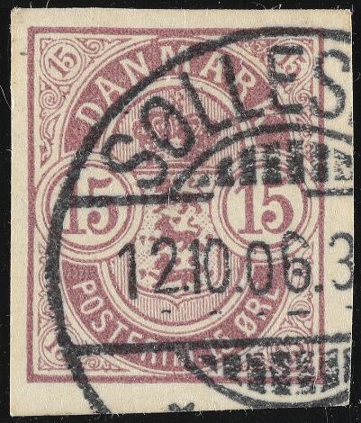 1902. 15 øre, purple. Imperforated so called "SØLLESTED-STAMP". Upright canc. SØLLESTED 12.10.06. Only 18 copies are known to exist of this iconic