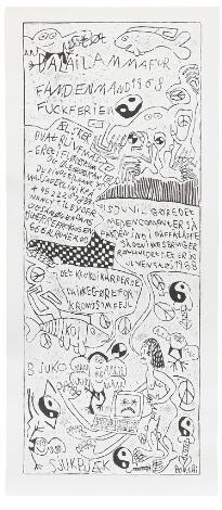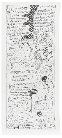 Kenneth Rasmussen: Uden titel, 2014. Signeret Kenneth Rasmussen. Linoleumssnit på papir. 220 × 95 cm.
