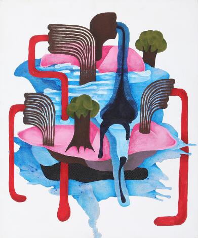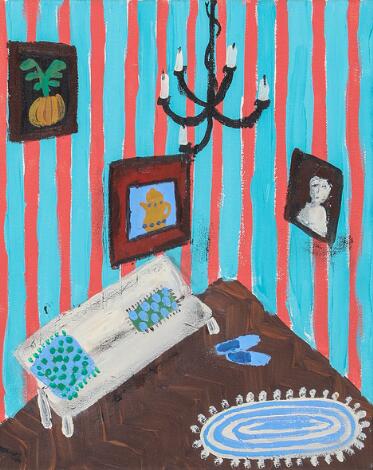 Aline Gaiad: "Where Walls wear whimsy”, 2024. Signeret på bagsiden samt med kunstnerens stempel. Olie på lærred. 30 x 24. Uindrammet.