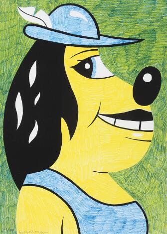 HuskMitNavn: Uden titel. Sign. HuskMitNavn, 79/100. Litografi i farver. Bladstørrelse 38 x 27.
