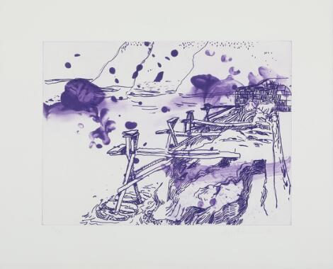 Michael Kvium: “Denkmal”. Sign. Kvium 90, 44/200. Silketryk i farver på Hahnemühle papir. Lysmål 90 x 62.