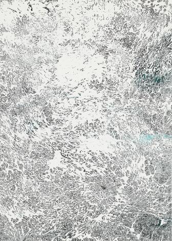 Kenneth Rasmussen: Uden titel, 2012. Signeret Kenneth Rasmussen. Linoleumssnit på papir. 220 x 95 cm.
