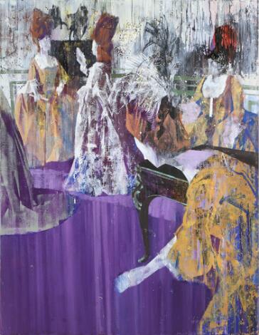Lars Tygesen: Rokkoko-interiør, 2014. Signeret og dateret på bagsiden. Olie på lærred. 170 x 130 cm. Uindrammet.