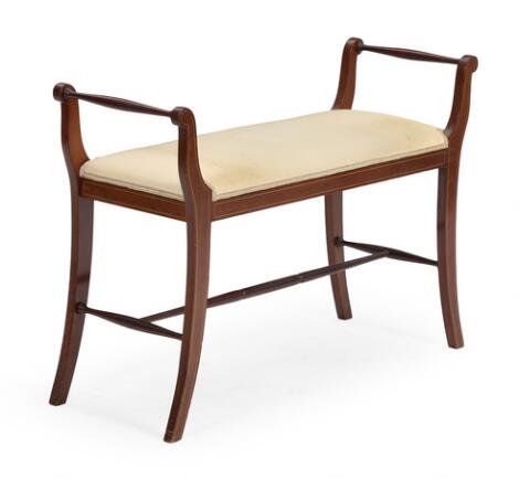 2549/289A mahogany piano bench, upholstered with light furniture fabric. 20th century. H. 66.5. W. 95 cm.