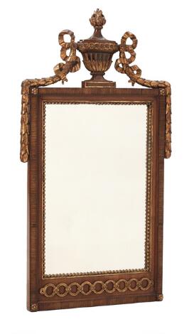 2549/287A late 18th century Louis XVI gilt wood and gesso mirror, richly carved with vase. H. 103. W. 56 cm.