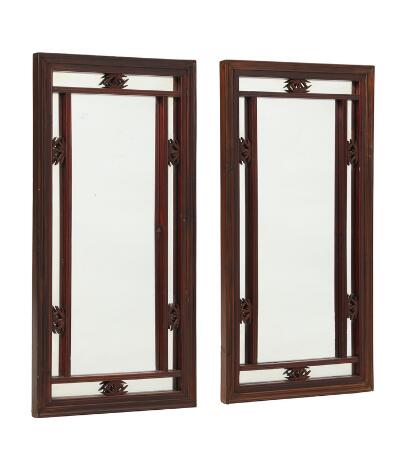 2549/286A pair of Chinese hardwood mirrors, carved with foliage and profiled edges. 20th century. H. 108. W. 55 cm. (2)