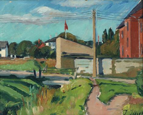 2549/628Immanuel Ibsen: City view, summer. Signed I. Ibsen. Oil on canvas. 36 x 45,5 cm.