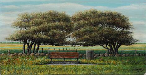 2549/657Søren Hagen: Untitled. Signed Hagen. Oil on board, edges is thick paper laid on board. 29 × 54 × 3 cm